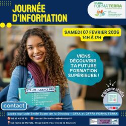 JOURNÉE D’INFORMATION « FORMATIONS SUPÉRIEURES » : samedi 07 février 2026 – de 14h à 17h REJOIGNEZ L’ AVENTURE DU VIVANT AVEC FORMA’TERRA Participez à la journée d’information consacrée aux FORMATIONS SUPÉRIEURES[…]