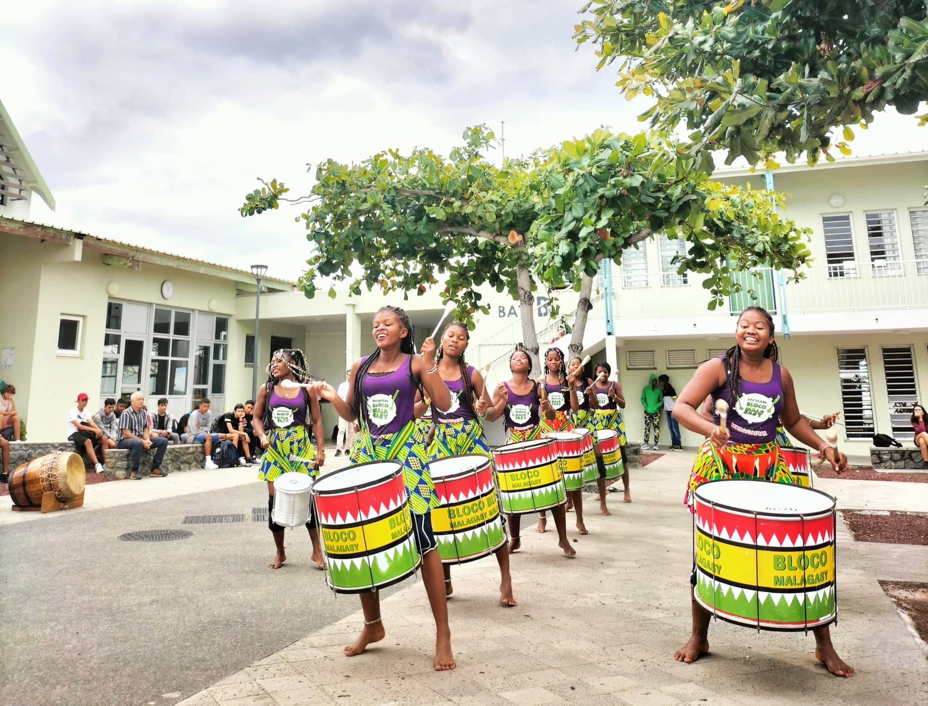 La Bloco Malagasy est un groupe de batucada (percussion afro-brésilienne) formé par 200 filles et enfants provenant des quartiers les plus défavorisés de Tuléar (Madagascar), élèves du Centre d’Art et Musique.