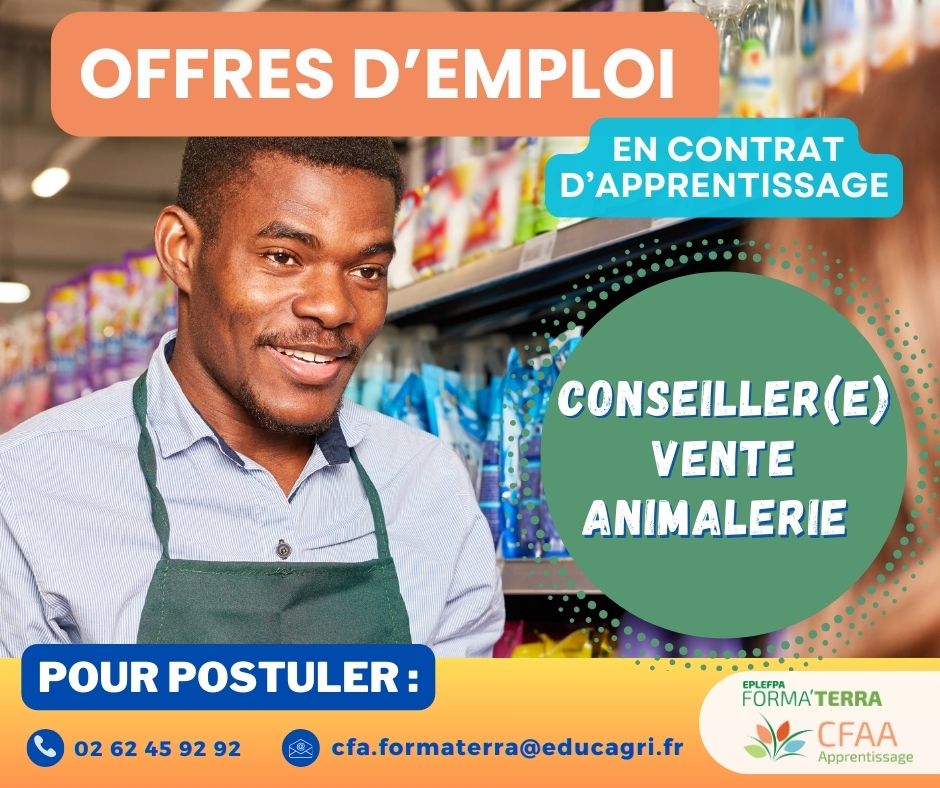 Nos entreprises partenaires dans les domaines du commerce et de l’animalerie, basées sur toute l’île recherchent des :