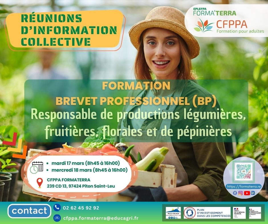 ✔ 𝐅𝐨𝐫𝐦𝐚𝐭𝐢𝐨𝐧 𝐁𝐏 𝐑𝐏𝐋𝐅𝐅𝐏 : Responsable de productions légumières, fruitières, florales et de pépinières